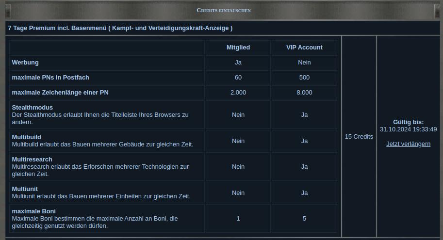 Zur Zeit gibt es nur ein Premium Accout zu buchen. Findet Ihr unter Credits ganz oben rechts ( in gelb ) !!